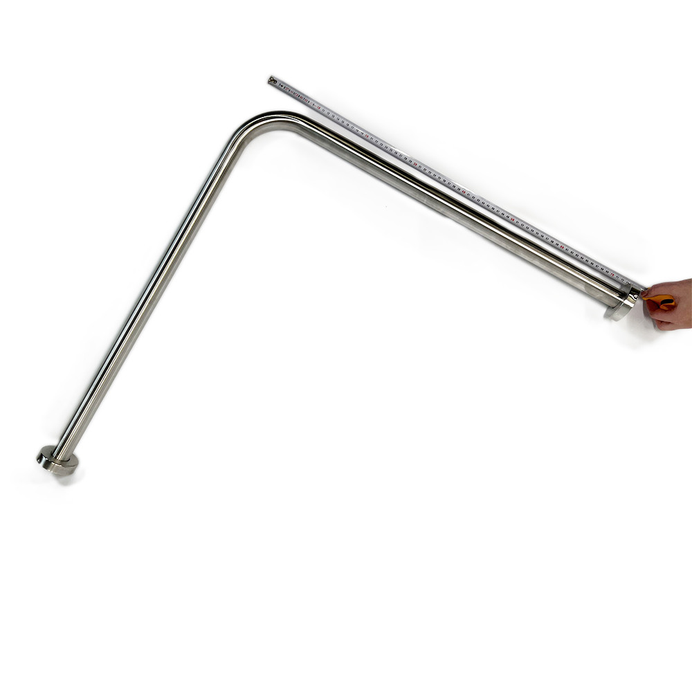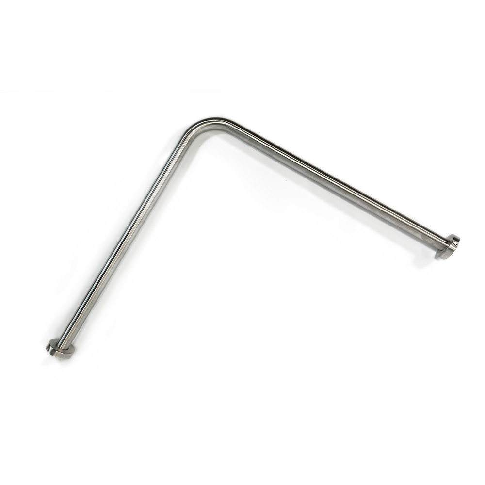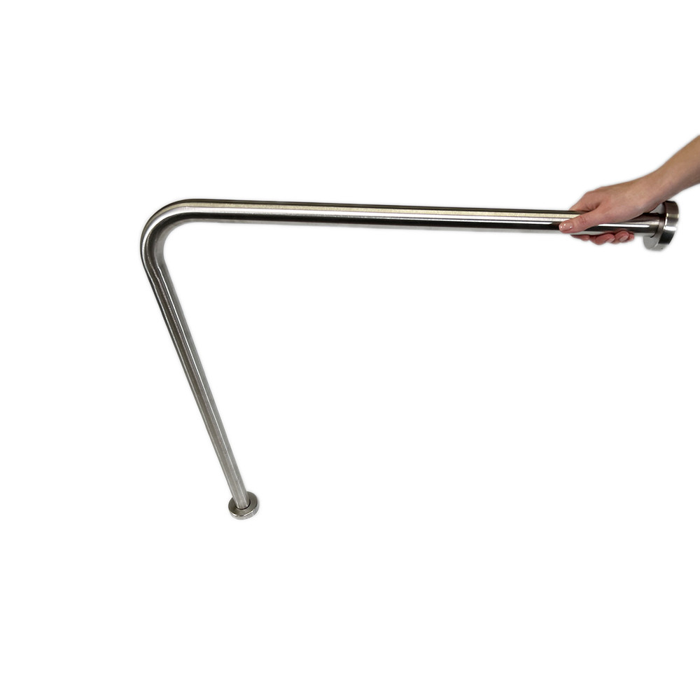 Поручень Г-подібний - встановлюється зліва чи справа від раковини або унітазу. Він розроблений таким чином, щоб за нього було зручно триматися рукою. Поручень має дві точки кріплення: стіна-підлога. Стіна, на яку кріплять поручень, має бути несучою. Кожна точка опори має два монтажні отвори для кріплення поручня дюбелями. Зверху кріплення закриті декоративною накладкою діаметром 52 мм. Уся конструкція виготовлена з нержавіючої сталі марки AISI 304.
