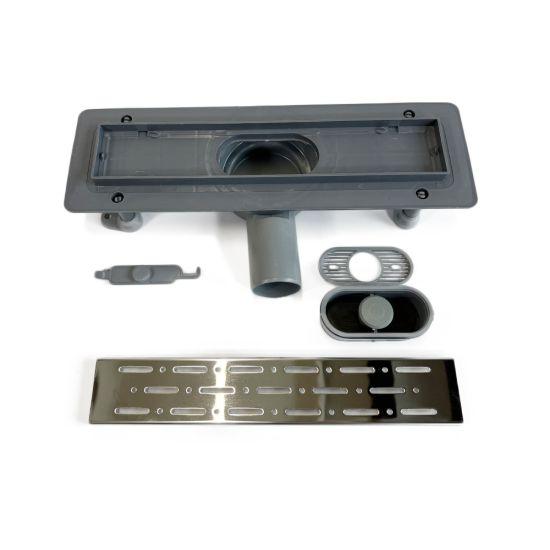 Решітка трапа виготовлена з нержавіючої сталі марки AISI 304 та витримує навантаження до 300 кг. На неї наклеєна поліетиленова плівка, яка надійно захищає від бруду та подряпин під час монтажу та перед експлуатацією. Також вона поставляється в захисній поліетиленовій плівці.