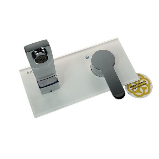 Панель управління виготовлена з скла, це оригінальне та функціональне рішення доповнить інтер'єр вашої ванної. На панелі розташовані змішувач та вентиль керування потоком води, вони виготовлені з високоякісної латуні з хромованим покриттям. Змішувач має нерухомий вилив з висувом на 13 см. Модель монтується на два отвори.