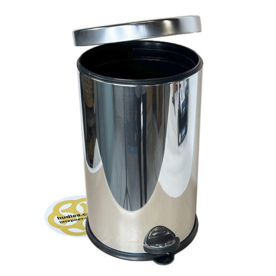 Відро для сміття з педаллю та кришкою з мікроліфтом виготовлене з нержавіючої сталі марки AISI 430. Воно має прогумовану пластикову педаль, яка дозволяє безконтактно викидати сміття. Кришка відра оснащена мікроліфтом, що забезпечує плавне опускання та безшумне закривання.